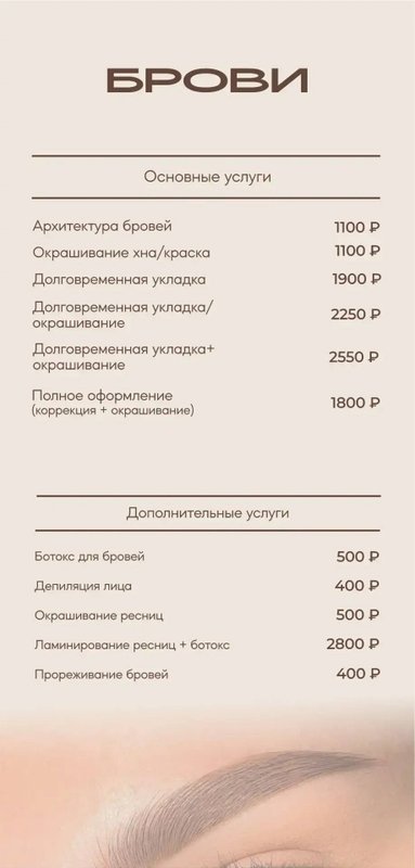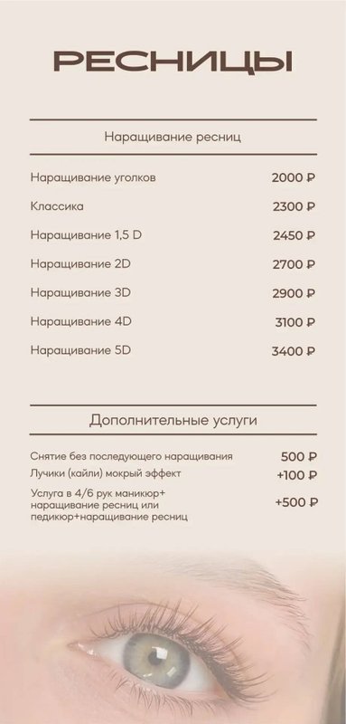 Также к услугам наших посетителей архитектура бровей, окрашивание ресниц, аппаратный и традиционный педикюр, спа-уход для ногтей.