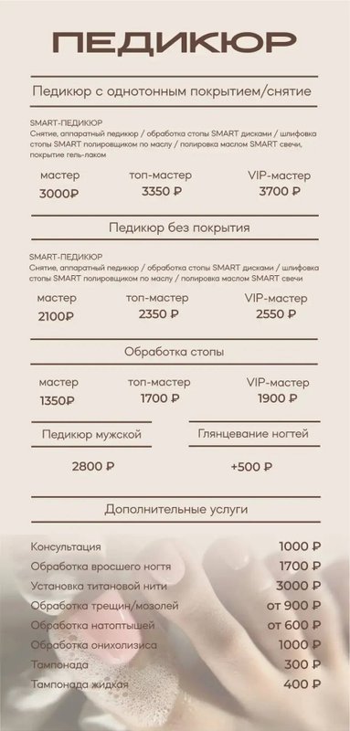 Иванова Софья как бьюти-специалист постарается сделать так, чтобы вы стали ее постоянным клиентом. Она предлагает такие услуги, как аппаратный, детский, мужской, японский маникюр, гелевый, аппаратный, детский, мужской и японский педикюр.